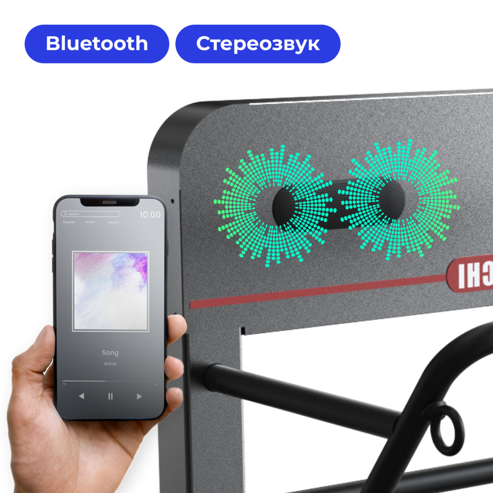 Благодаря Bluetooth-аудиосистеме и встроенным цифровым часам для контроля времени упражнения станут легче, увеличится выносливость, и тренировки станут в радость. Используйте музыку для правильного настроения! Просто подключитесь к стенке через Bluetooth и наслаждайтесь тренировкой!